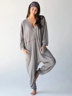Natural Life Knit V-Neck Jumpsuit – Charcoal