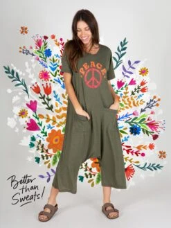 Natural Life Nomad Knit Printed Jumpsuit – Peace Sign