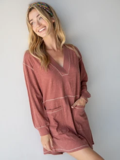 Natural Life Charlie Long Sleeve V-Neck Dress – Rust