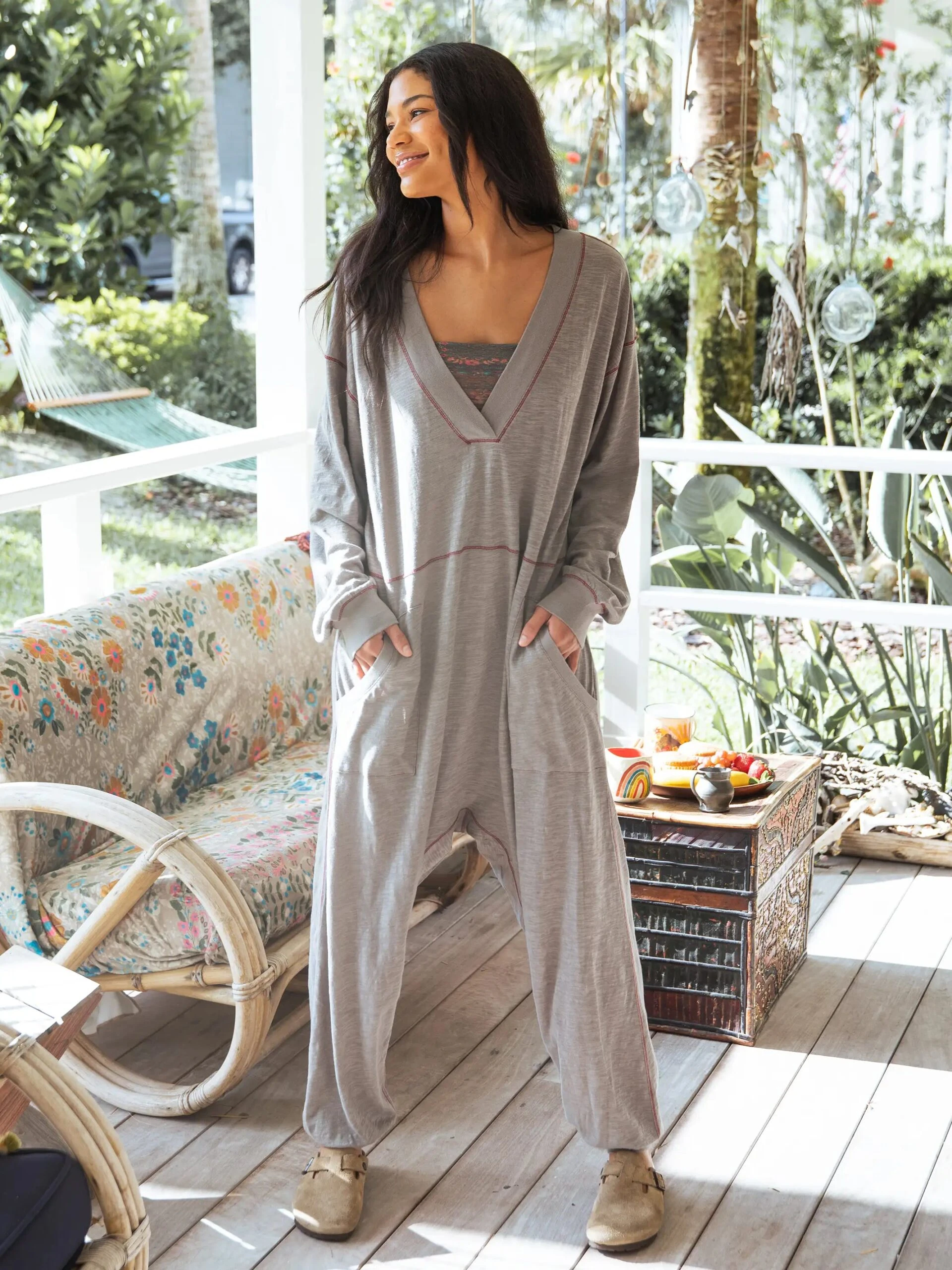 On the weekends, lounging at home, or going on a quick run to the store, the Johnnie Jumpsuit has you covered. We all need a fast and easy outfit to throw on that is still super cute! The drop crotch and slouchy fit create the most comfortable and effortlessly cool look. This versatile jumpsuit is the perfect casual staple that you can always pull out!